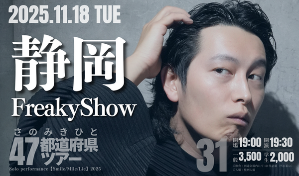 | 2025年11月18日(火) 【静岡】さのみきひと47都道府県ツアー “Smile/Mile/Lie” | ||