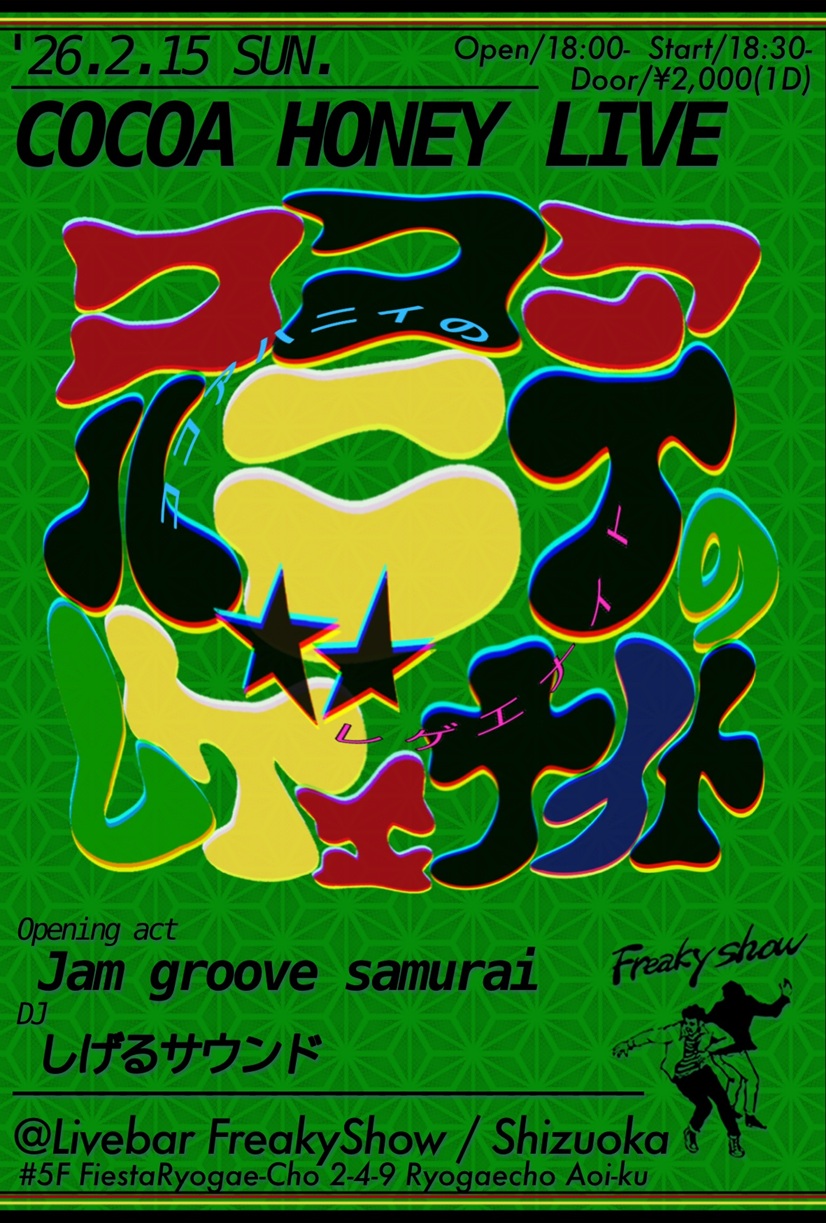 | 2026年2月15日(日) 夜)『ココアハニイのレゲエナイト』 ///// | ||