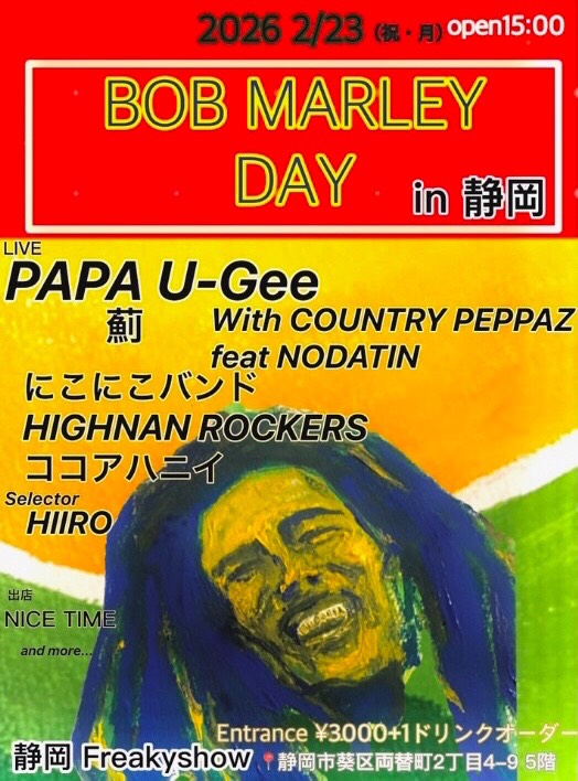 | 2026年2月23日(月) (祝日) BOB MARLEY DAY 静岡 | ||